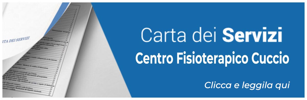 Qualora il Centro fisioterapico di Benedetto Cuccio S.r.l. non dovesse rispettare gli impegni declinati nella Carta, gli utenti potranno manifestare il loro disappunto mediante il Modulo di Reclamo, disponibile nelle sale d’attesa in forma cartacea o scaricabile qui.